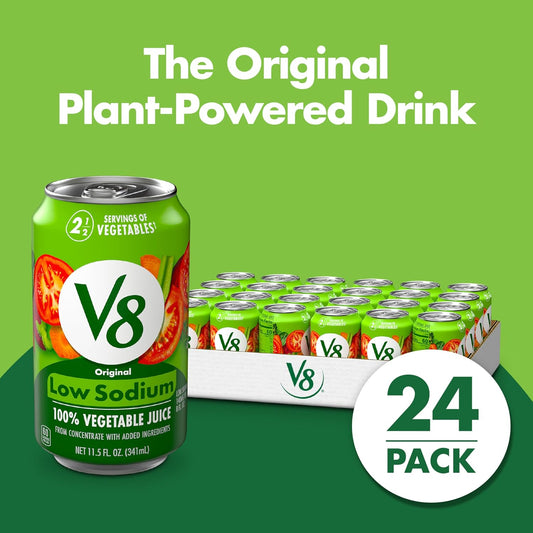 V8 Low Sodium Original 100% Vegetable Juice, 11.5 fl oz Can (24 Pack)